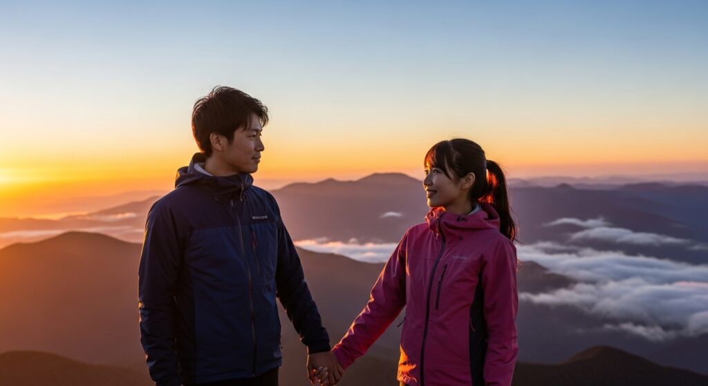 夜景を見ながら笑い合う姿は、**「光=希望」**の象徴。