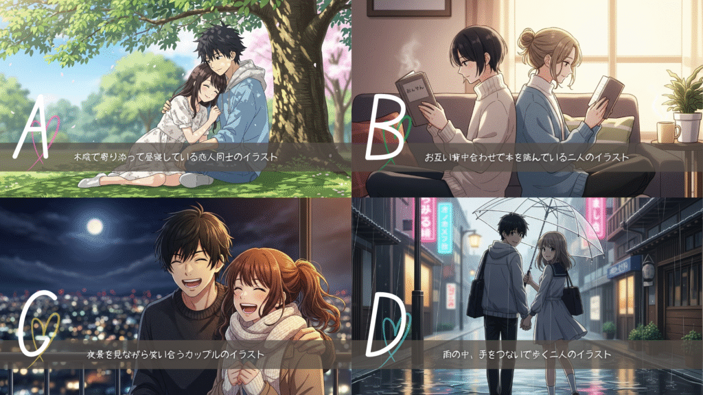 このテストでは、**あなたが恋人に求めている「安心の本質」**がわかります。