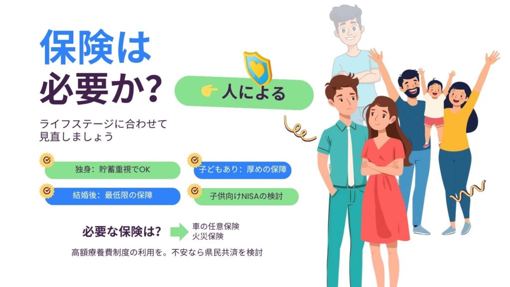 高額な終身保険よりも、必要な期間だけ保障を得られる掛け捨て型の定期保険で十分なケースが多いです。コストを抑えつつ、必要なリスクに備えられます。